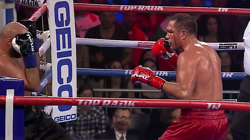 Заради бликащата кръв върху ринга имаше реална опасността срещата да бъде прекратена и да бъде отсъдена победа с технически нокаут на Дину.