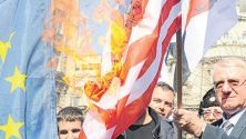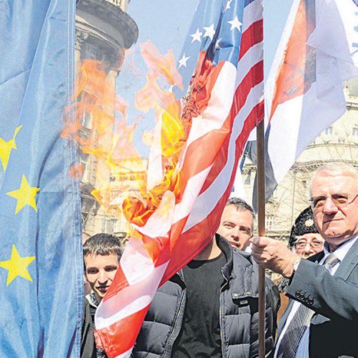В центъра на Белград днес националистическата Сръбска радикална партия (СРП) на Воислав Шешел проведе протестен поход по случай 20-та годишнина от началото на въздушните удари на НАТО върху бивша СР Югославия, на който бяха запалени знамена на САЩ, ЕС и НАТО, информира скопският телевизионен канал “24 Вести“.