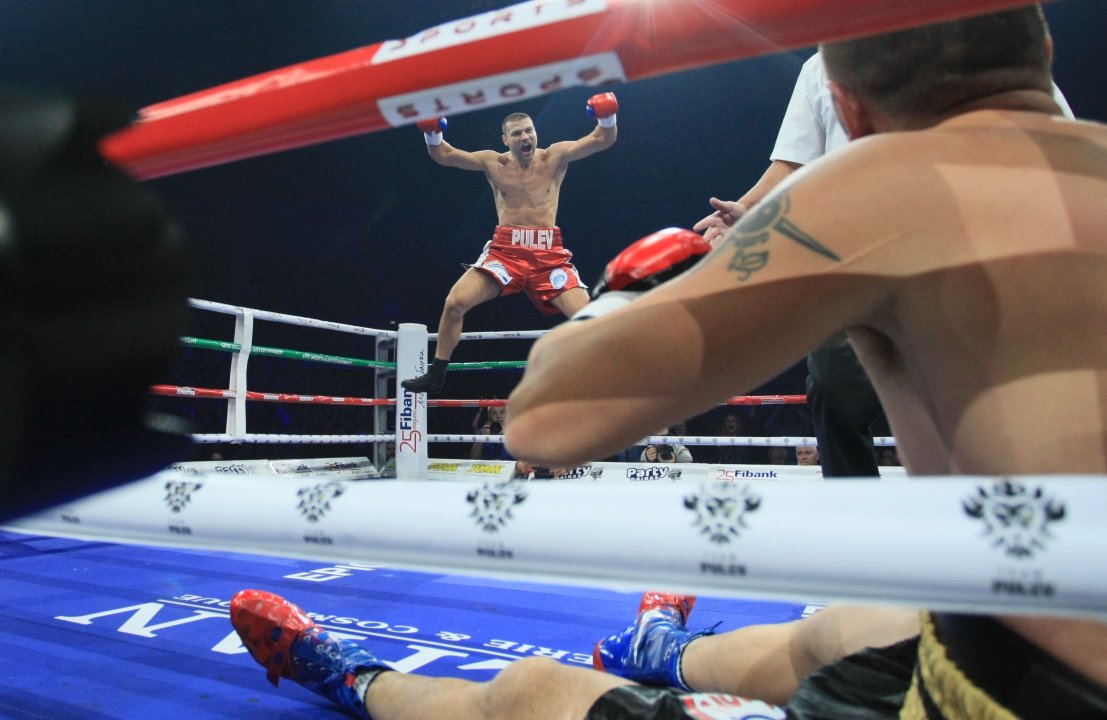 Българският боксьор Кубрат Пулев целуна репортерката Джени Суше в края на интервю, дадено след победата му над румънеца Богдан Дину в Коста Меса (Калифорния).
