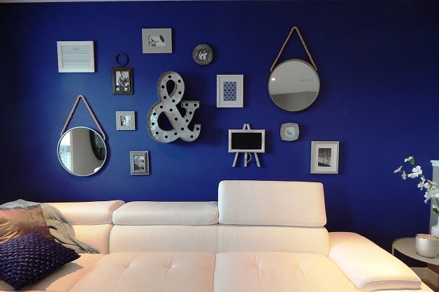 Ако изберете синьото за основен цвят в едно помещение, задължително трябва да балансирате с топли цветове в обзавеждането и декорацията. Тъмно синьото създава усещане за тъга, затова го избягвайте като основен цвят. За да създадете леко, успокояващо и ефирно настроение, изберете лазурни, небесносини и тюркоазени нюанси.