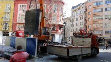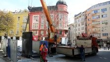 Днес бе премахната водната стена от площад "Гарибалди“. Вдигането ѝ започна рано сутринта със специален кран.