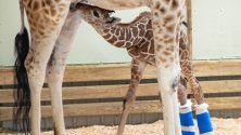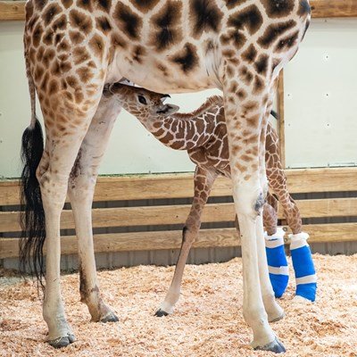 Новородено жирафче в зоологическата градина на Сиатъл получи ортопедични обувки, които да стабилизират задните му крачета, съобщи Асошиейтед прес.