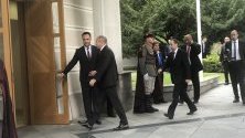 Пендаровски изпрати от президентската резиденция "Водно" Георге Иванов. Веднага след това започнаха срещите му с държавните глави на съседните държави и дипломатическите гости и пръв на среща бе приет българския президент.