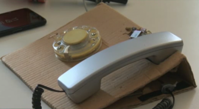 Ученици показаха нагледно, че пътуването във времето е възможно. Мариян Захариев и Велислав Великов създадоха ретро телефон с шайба, който работи със СИМ карта.