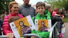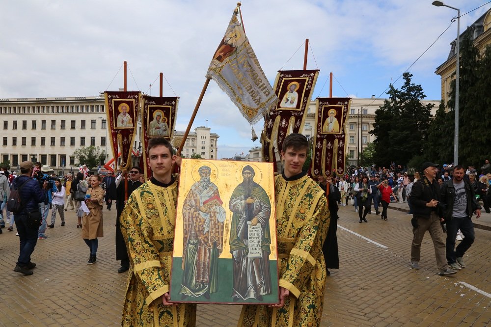 Шествието, под звуците на химна на светите братя Кирил и Методий, се предвожда от президента Румен Радев, вицепрезидента Илияна Йотова, вицепремиера Екатерина Захариева и генералния директор на ЮНЕСКО Одри Азуле. То започна от сградата на Археологическия музей и се движи по жълтите павета към Националната библиотека "Свети Свети Кирил и Методий.