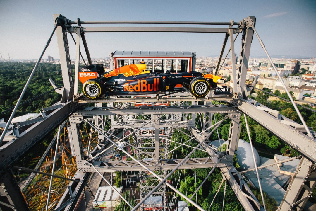 Дни преди началото на кръга от Формула 1 в Австрия, Макс Верстапен и Пиер Гасли избраха нетрадиционен подход да покажат един от състезателните си автомобили. Двамата пилоти от отбора на Red Bull заведоха своя Aston Martin в увеселителен парк във Виена, където той замени една от кабините на виенското колело там.