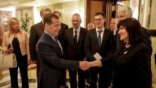 Цвета Караянчева благодари на Дмитрий Медведев за решението на казуса с възможността българските студенти да работят почасово в Руската федерация. Председателят на парламента гарантира, че българската страна полага необходимите усилия за реализацията на проекта за изграждането на разклонението от „Турски поток“ към България и Сърбия, което страната ни предлага да се нарича „Балкански поток“.