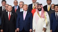 В първите минути настроението изглеждаше приятелско, а лидерите пристигнаха с усмивки на лицата, позираха за традиционната "семейна снимка". Американският президент Доналд Тръмп и китайският Си Дзинпин, чиито страни са затънали в разрушителна търговска война, си размениха ръкостискане преди общата снимка.
