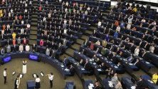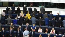 Евродепутатите бяха приканени да се изправят по време на химна, но 29-те британски представители демонстрираха враждебността си към ЕС, като се обърнаха с гръб при изсвирването на Одата на радостта в пленарната зала на ЕП.