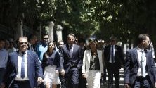 В президентския дворец Мицотакис пристигна, придружен от съпругата си Марева, двете си дъщери и сина си.