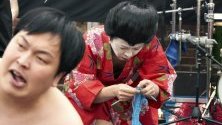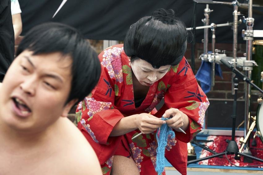 Японската група "Гига боди метъл" спечели първия шампионат по хеви метъл плетене, организиран във финландския град Йоенсу. Тяхното шоу включваше куфеещи сумисти и мъж, облечен в кимоно, който плетеше.