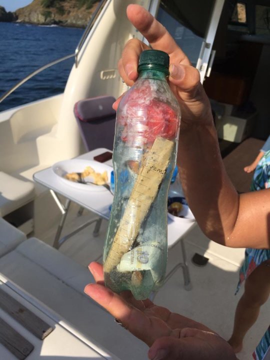 Две летовнички от Русия откриха писмо в бутилка в Ропотамо. В понеделник те отишли на разходка с яхта по устието на реката и там в бутилка от минерална вода открили писмо, написано на български език и сумата от 10 лева, с която изпращачите молят намерилия писмото да се почерпи за тяхно здраве.