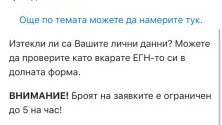 Експерти вече предупредиха, че писането на ЕГН в различни сайтове и приложения може да бъде опасно. Според тях, така допускаме вторичен риск, тъй като ако до този момент личните ни данни не са фигурирали, сега могат да се появят в нечии бази данни.