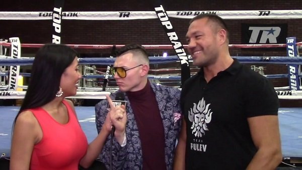 Боксьорът Кубрат Пулев показа самочувствие пред микрофона на американската репортерка Хелън Йе. Българската звезда в тежка категория показа, че си е научил урока и не целуна сексапилната журналистка, но даде ясно да се разбере, че се смята за по-добър боксьор от Анди Руис и е готов да стане световен шампион.