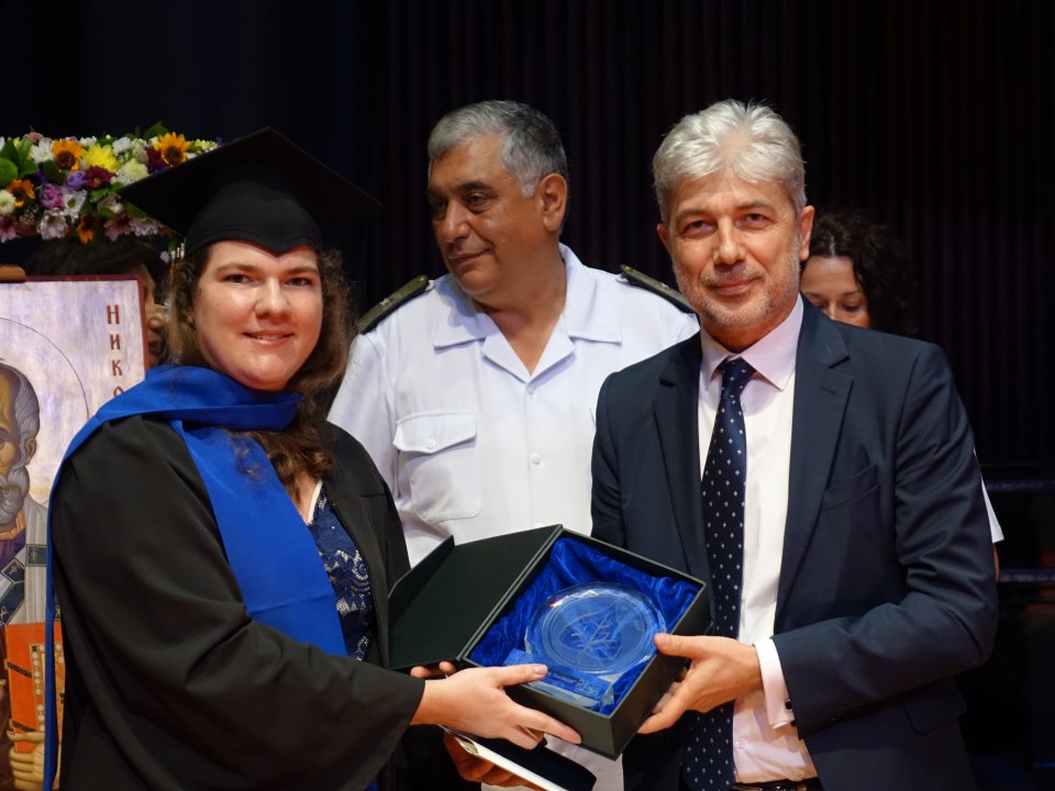 Министърът на околната среда и водите Нено Димов награди днес отличника във Висшето военноморско училище (ВВМУ) „Никола Йонков Вапцаров“ във Варна. Той участва в официалната церемония по дипломиране на студентите от випуск 2019 г. и награди Диляна Димитрова – студента с най-висок успех.