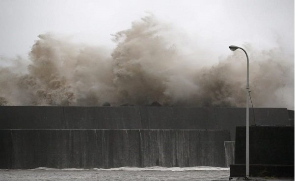 служител по борба с бедствията от югозападната префектура Токушима. Очакват се и рекордни валежи - до 1,2 метра за денонощие. Властите се опасяват също от наводнения, свлачища и приливи.