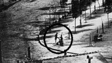 И все пак, ако се вгледате, може да видите два силуета - на мъж и на ваксаджия, който лъска обувките му. За да се появят върху фотографията, двамата е трябвало да стоят неподвижно няколко минути.