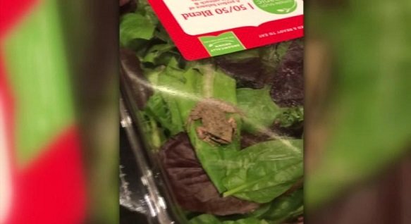 Семейство от американския щат Уисконсин имаше неочакван гост по време на вечеря. След закупуването на здравословна органична храна в местен магазин, се оказва, че жива жаба се е скрила в кутията със салата. Шокираното семейство моментално представи „органичния“ си посетител в социалните медии.