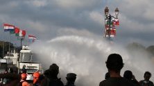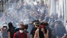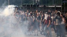 Преди това полицията използва и водни оръдия, за да разпръсне протестиращите.