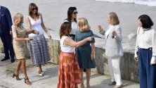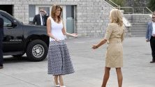 Първата дама на САЩ Мелания Тръмп отново прикова вниманието на всички със смайващата си визия по време на среща на първите дами в Биариц, където са се събрали лидерите на водещите седем държави в света.