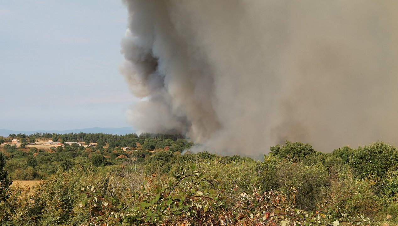 Военнослужещи от Центъра за подготовка на специалисти – Сливен със специализирана техника участват в гасенето на горски пожар, възникнал в борова гора в района между селата Еленово и Сокол, община Нова Загора.