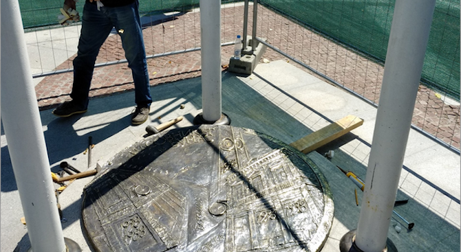 Под Часовника, любимото място за срещи на поколения бургазлии, днес художникът Кольо Кехайов монтира плоча от бронз, разказваща неговата история през годините. Върху нея са изобразени различните локации, на които се е наложило да бъде местен този градски символ през годините. Това съобщиха от пресцентъра на Община Бургас.