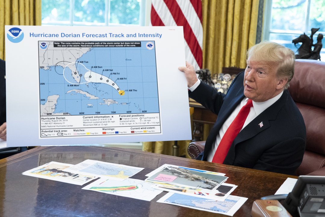 Президентът на САЩ Доналд Тръмп продължава да упорства, че щатът Алабама е сериозно заплашен от Дориан, въпреки че метеоролозите твърдят противното. На брифинг в Овалния кабинет в Белия дом вчера Тръмп показа карта на американския Национален център за наблюдение на ураганите, на която е показано, че ураганът може да премине над Флорида. На картата имаше нарисуван на ръка полукръг, загатващ, че част от Алабама също е изложена на риск.