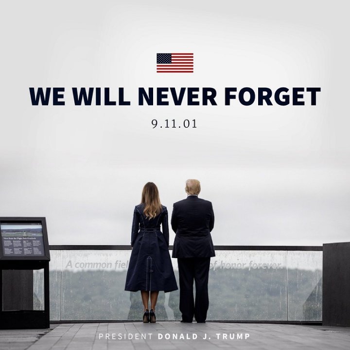 „Една хубава септемврийска сутрин бе белязана от силен шок, агонизираща мъка и дълбоко страдание. Силата, смелостта и състраданието на Америка обаче останаха непоклатими”, заяви Тръмп. Очаква се президентът да участва във възпоменателна церемония в Пентагона, а вицепрезидентът Майк Пенс ще произнесе реч на мястото на третата атака край Шанксвил, щата Пенсилвания.