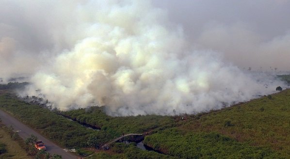Някои от най-сериозните пожари са в богатите на въглерод торфища, покрити със слоеве от разложен растителен материал с дебелина няколко метра, които стават силно запалими, когато водата от тях бъде източена, за да бъдат превърнати в плантации.