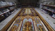 Затова веднага след като е изнесен от катедралата, килимът е разгънат и изсушен. Реставраторите били изправени обаче пред истинско предизвикателство - килимът тежал два тона или почти два пъти повече в сравнение с обичайното му тегло.