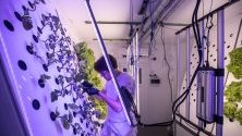 Босилекът, марулите и репичките тук растат вертикално и без почва. Това е специално създадена лаборатория, в която чешки учени симулират отглеждането на храна на Марс. С техния труд ще стане възможно производството на храни на Червената планета в бъдеще.