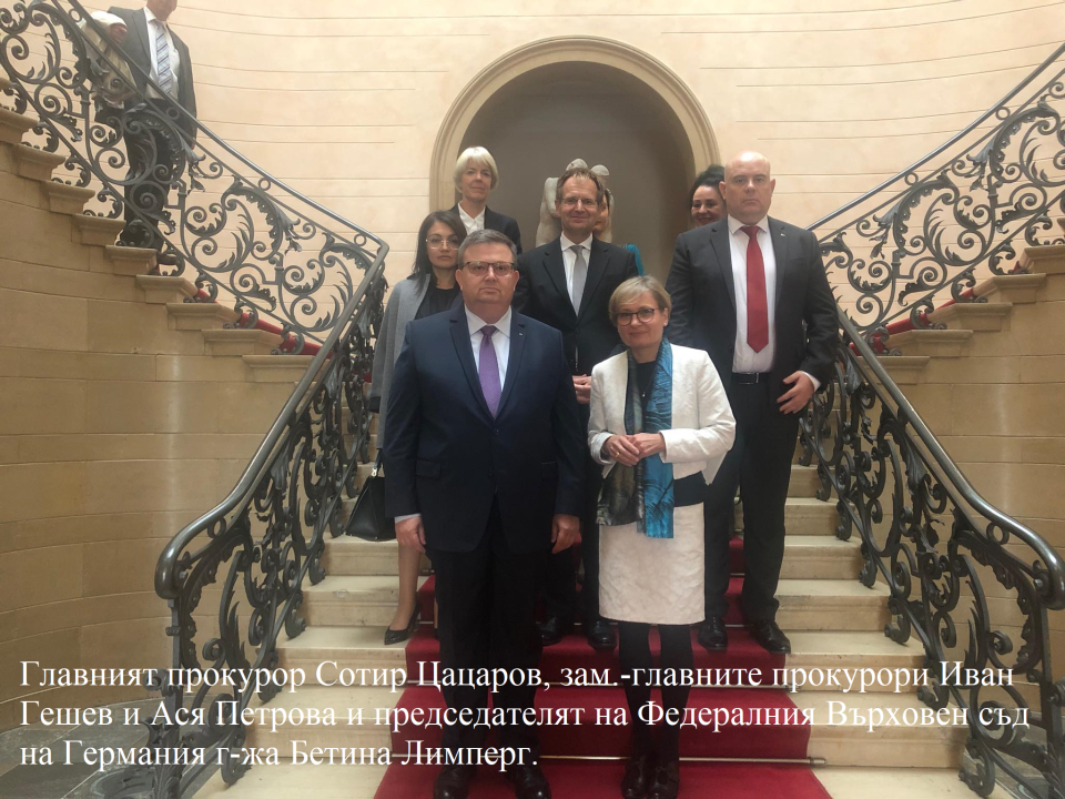 Главният прокурор Сотир Цацаров е на официално посещение в Германия по покана на федералния прокурор д-р Петер Франк. В Карслруе, където е седалището на Федералната прокуратура, българският главен прокурор е придружаван от заместниците си във ВКП и ВАП Иван Гешев и Ася Петрова, съобщиха от прокуратурата.