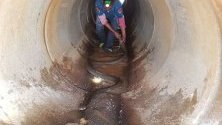 Змията се извиваше, плискайки вода, опитвайки се да се плъзне обратно в тръбата, но след множество опита в крайна сметка бе издърпана за опашката.