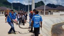 „Седем спасителни работници, включително аз, отидохме“, каза Криткамон Кангае (26 г), добавяйки, че имението е изградено на парцел, който някога е бил джунгла.