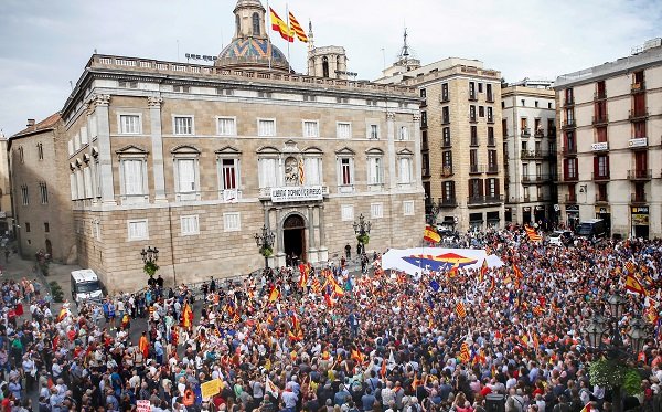 Противници на сепаратизма в Каталуния проведоха митинг пред кметството в Барселона. Демонстрацията е по призива на центристката партия "Сиудаданос" начело с лидера ѝ Албер Ривера.