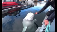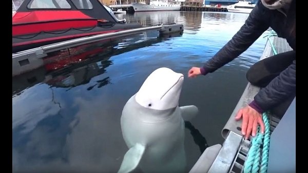 Кит белуга, заснет да си „играе“ с група южноафрикански фенове по ръгби, може да е избягал от руска военна шпионска програма.