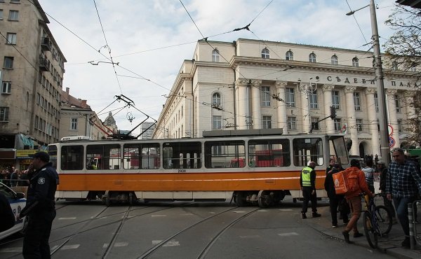 Във вторник трамвай излезе от релсите и блъсна жена в близост до Съдебната палата в София. Стрелка от релсовия път не е превключила добре и това е довело до дерайлирането на мотрисата.