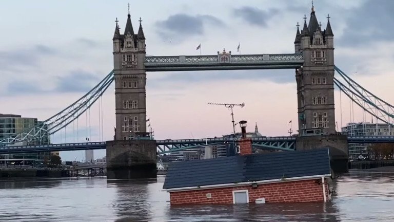 Тази неделя недалеч от Тауър бридж в Лондон движението за борба с климатичните промени Extinction Rebellion шокира гражданите на британската столица със специална "инсталация" насред река Темза.