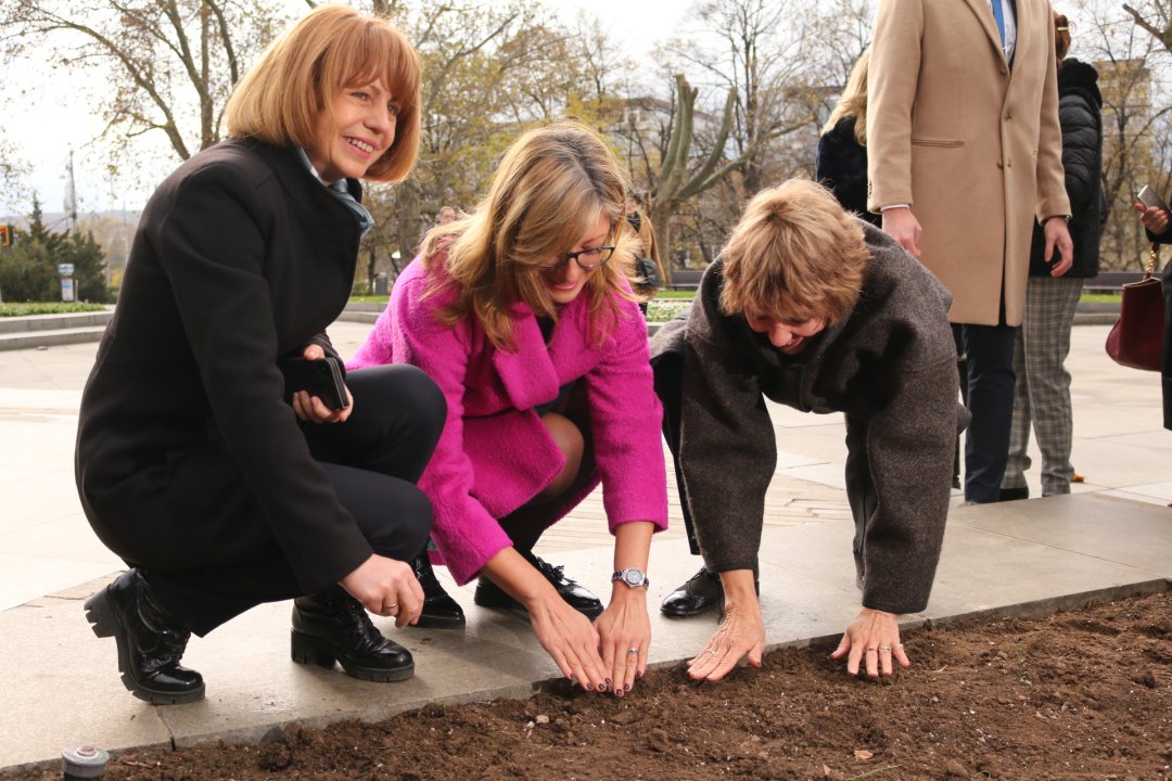 Пет от над 3000 лалета „Сердика” засадиха министърът на външните работи Екатерина Захариева, кметът на София Йорданка Фандъкова и посланикът на Нидерландия у нас Беа тен Тъшър в градинката срещу Софийския университет.