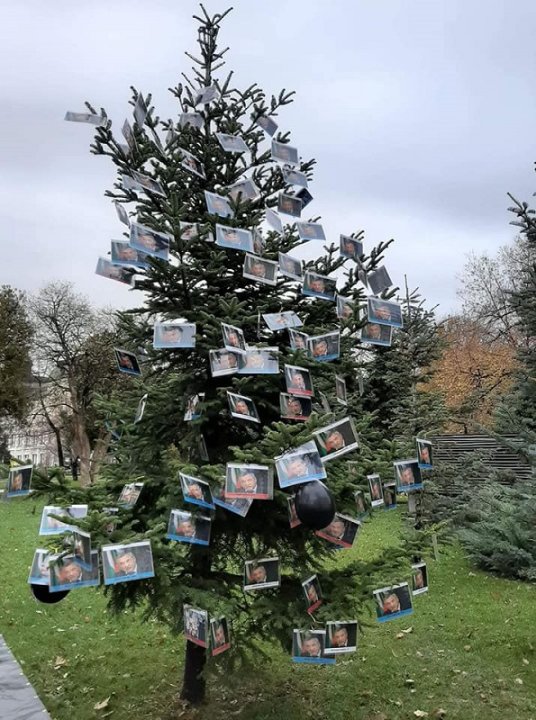 Протестиращите майки украсиха коледно дръвче с лика на Валери Симеонов. Във Facebook те написаха: „118 народни представители без лица. Те са Валери Симеонов“.