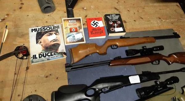 Обиски са били извършени в домовете на 19 заподозрени в цялата страна – от Сицилия до Милано, иззети са автоматични оръжия, пушки, арбалети, мечове, ножове, нацистки флагове и литература за Хитлер и Мусолини.