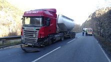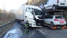 В опит да избегне изпреварващият автомобил, товарен ТИР с румънска регистрация се удря в задната част на автовоз с благоевградска регистрация.