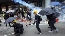 Въпреки спокойния старт на протеста в сряда, насилието избухна близо до протеста, когато тълпата минаваше през квартал Ван Чай на главния остров на финансовия хъб. Полицията използва сълзотворен газ, докато протестиращите действаха с коктейли Молотов.