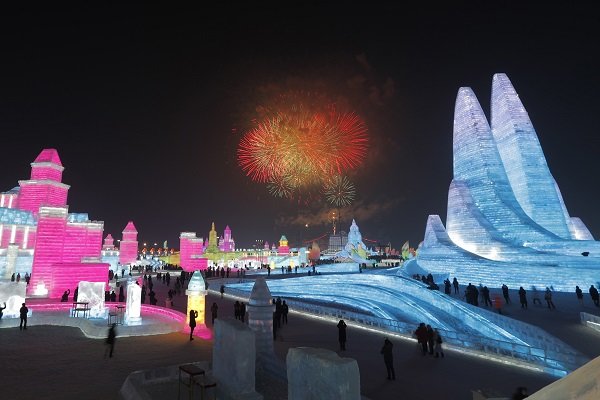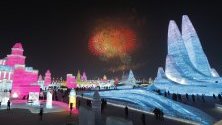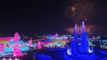 Зрелищно шоу с фойерверки постави началото на ежегодния Фестивал на ледените фигури в Китай. Събитието се провежда в град Харбин, който е един от най-студените градове в Китайи температурите могат да паднат до минус 35.