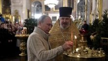 На службата присъства премиера Дмитрий Медведев заедно със съпругата си Светлана,