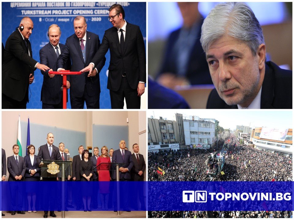 Заради водната криза в Перник, екоминистърът Нено Димов подаде оставка, която премиерът прие. Димов беше обвинен в умишлена безстопанственост и остава за 72 часа в ареста. Путин, Ердоган, Борисов и Вучич откриха тържествено "Турски поток". Светът изтръпна след избухването на самолет на територията на конфликтния Иран. При инцидента загинаха 165 пасажери и 9-членния екипаж. Ето и подробностите:
