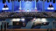 Путин говори вече повече от час пред депутатите от двете камари на руския парламент, пред министрите от кабинета и ръководителите на регионите.