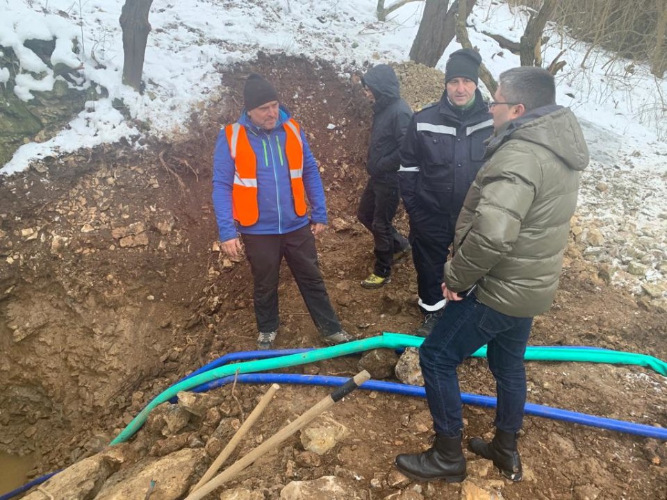 Аварията предизвика внезапното спиране на водоподаването, планирано иначе за петък сутринта. Екипи на ВиК и на частна фирма работят по подмяна на компрометирания участък от стария, повече от 40-годишен водопровод.