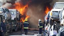 В пожара изгоряха над 100 коли за скрап, повечето от които с газови уредби. Това предизвика канонада от гърмежи, които отекнаха в целия град.