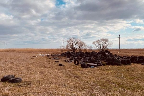 Повече от половин година институциите не могат да връчат предписание на нарушителя, който е изхърлил повече от хиляда гуми на около два декара и засега е неизвестен. Теренът е частен, а проверката показа, че се превръща и в сметище.